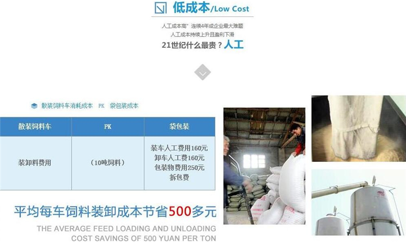 1、散裝運(yùn)輸飼料比包裝成袋運(yùn)輸不但節(jié)省勞動(dòng)力,而且成本較低, 但要求畜禽場(chǎng)具備盛裝飼料的貯料罐。