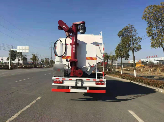 散裝飼料運(yùn)輸車,散裝飼料車的飼料罐架設(shè)在卡車的底盤上,罐頂開有進(jìn)料口.頂部的一根螺旋輸送卸料管(俗稱卸料絞龍)則可自由回轉(zhuǎn)和抬升,抬升的仰角可達(dá)60度。運(yùn)輸時(shí),頂部的螺旋管平臥在罐頂;卸料時(shí)則抬起,使管端的出料口與畜禽飼養(yǎng)場(chǎng)貯料罐頂部的進(jìn)料門相接,駕駛室內(nèi)裝有操縱裝置(操縱裝置也可裝置在罐體尾部),卸料時(shí)通過車底的動(dòng)力輸出軸和減速器來驅(qū)動(dòng)螺旋,以完成卸料。