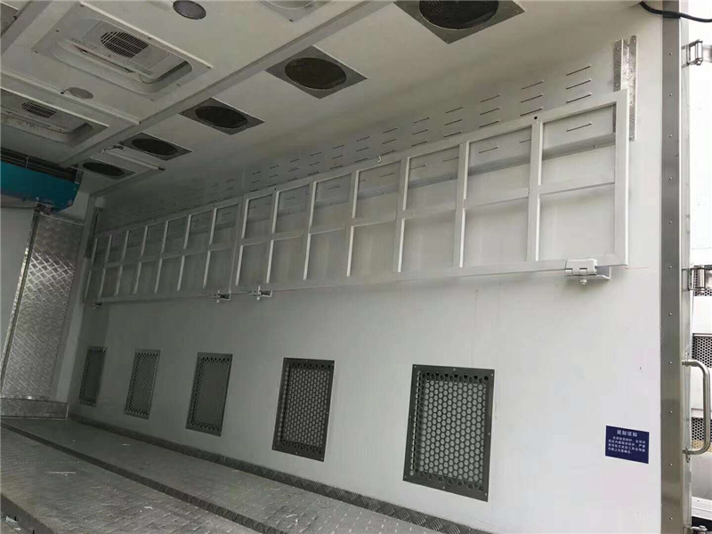 3、恒溫系統(tǒng):由車載制冷機(jī),暖風(fēng)機(jī),氣體混合輸送倉(cāng),箱體排風(fēng)扇等組成,實(shí)現(xiàn)仔豬生存空間氣體的流通和恒溫。